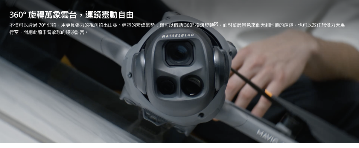 3. 配備全新 360° 萬象雲台,不僅可輕鬆實現 70° 仰拍,更支援 360° 的橫滾旋轉,讓多角度自由運鏡成為現實。