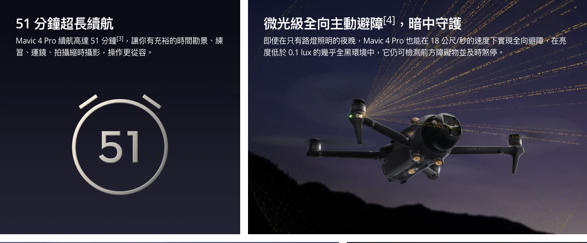 DJI Mavic 4 Pro 在相機系統、視覺感應系統、飛行性能和影像傳輸系統等方面全面提升。主要包括: