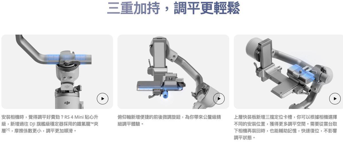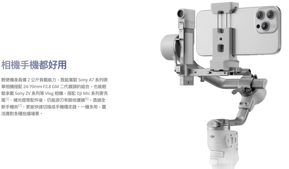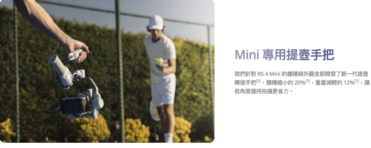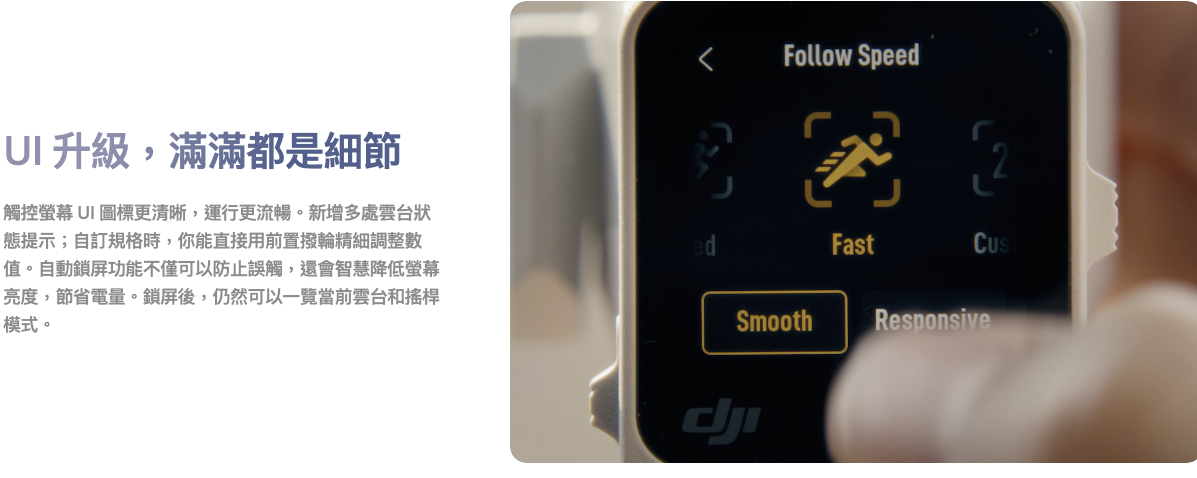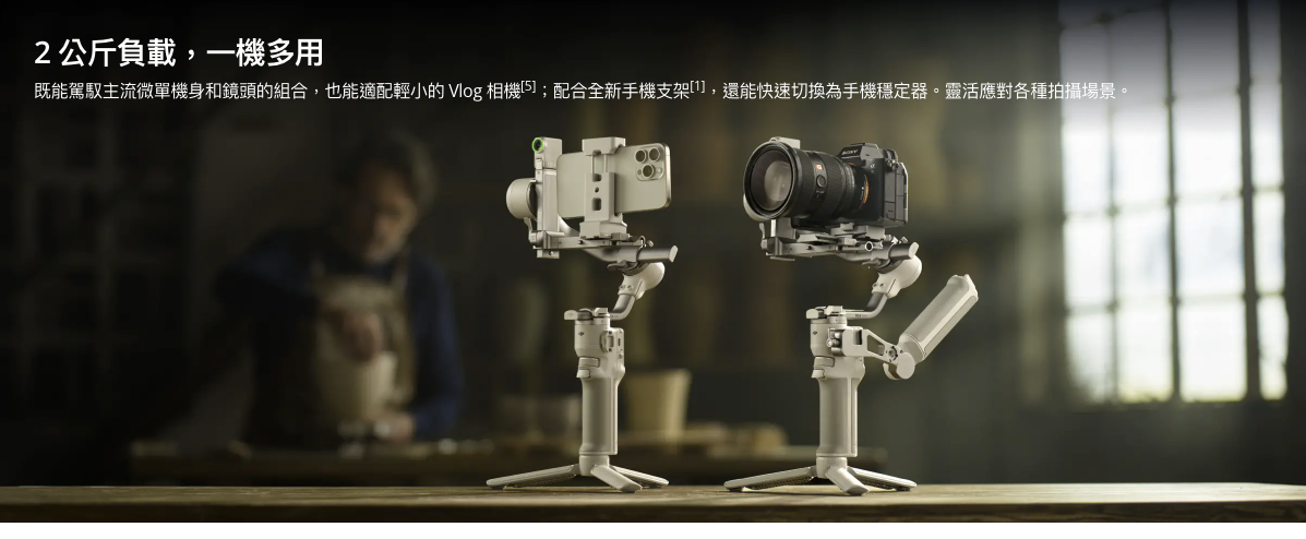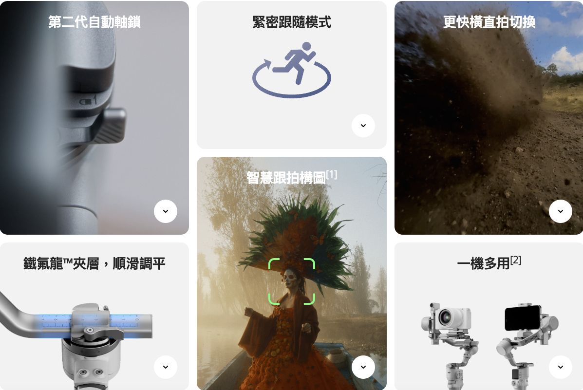 DJI RS 4 Mini 支援平移跟隨、雙軸跟隨、全域跟隨、360 旋轉和自訂模式。