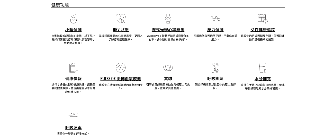 搭載專門的進階健康及健身功能,vívoactive 5 不只是支智慧手錶 — 而是能支持你達成任何目標的個人腕上教練。