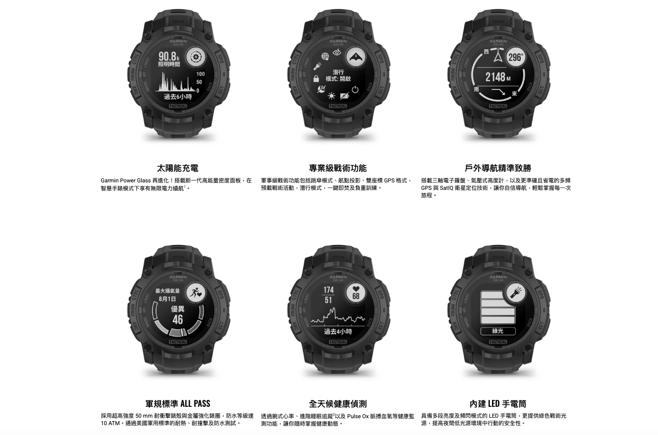 Garmin Instinct 3 - 50 mm, AMOLED, 戰術版 本我系列 GPS 智慧腕錶