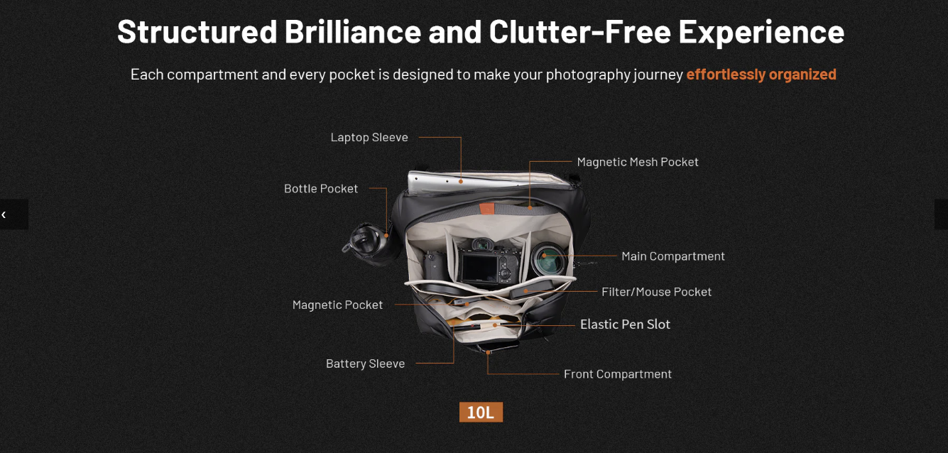 3. 細緻的分隔,豐富的內部口袋,確保物品有序收納。