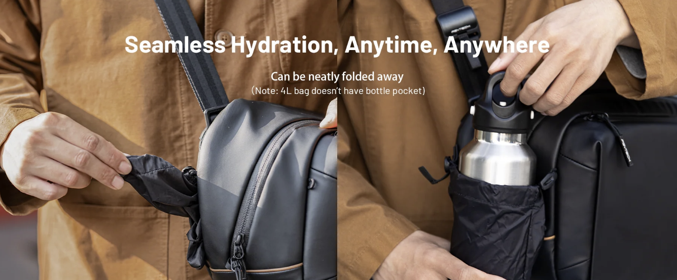 *僅 6L 10L:水瓶袋隱藏在側面,不使用時可以折疊起來。